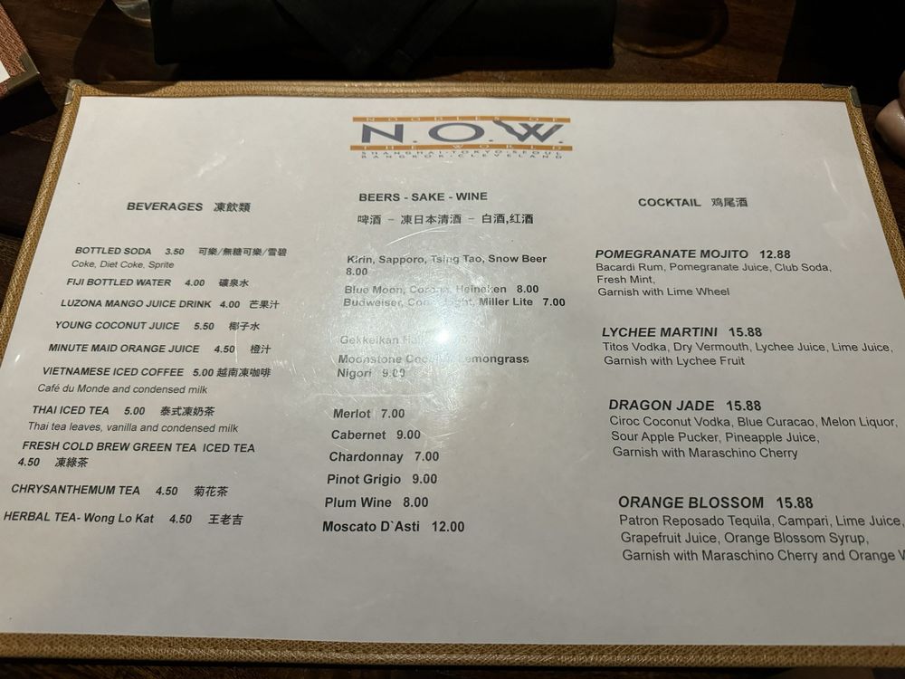 With efficient service, a plentiful drink selection, and a lively atmosphere, N.O.W promises a memorable meal whether you're dining in or opting for takeout. Don't miss out on this popular spot for dinner or a late-night bite!